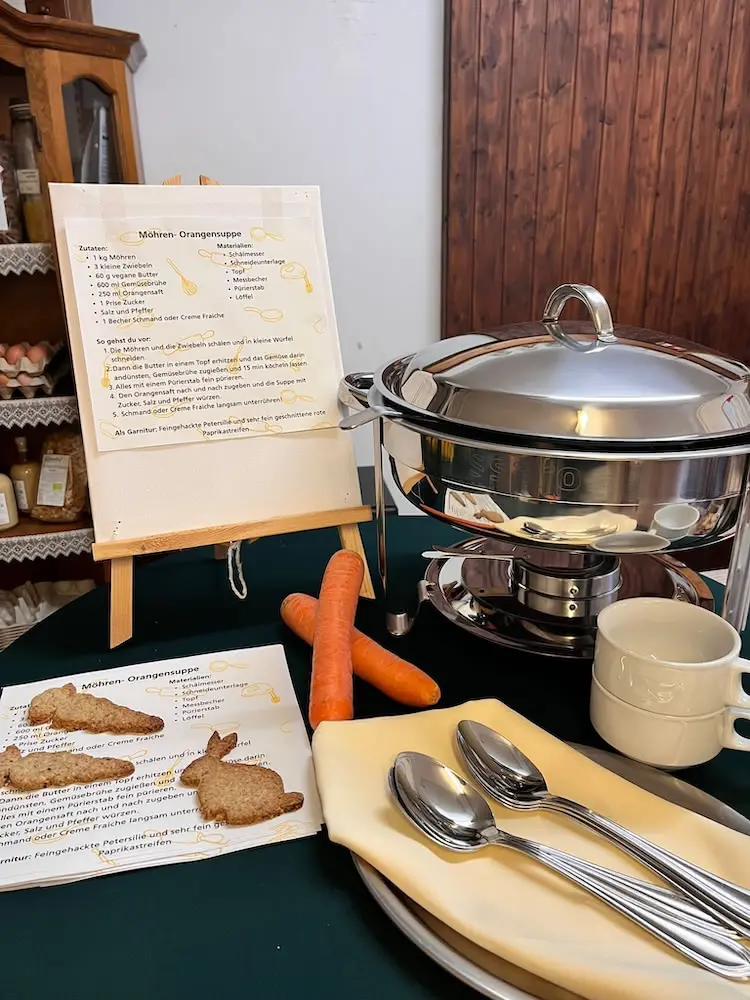 Heute ist wieder Probiertag: Möhren-Orangensuppe, selbstgemacht in unserer Hofküche! 😋 Die Rezepte gibt’s bei uns zum Mitnehmen! Außerdem: es grünt und blüht schon auf dem Kossehof!