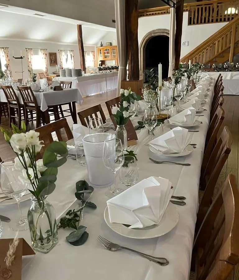 Wir sorgen für ein gelungenes Fest mit festlich gedeckten Tischen sowie leckeren Getränken und Speisen.