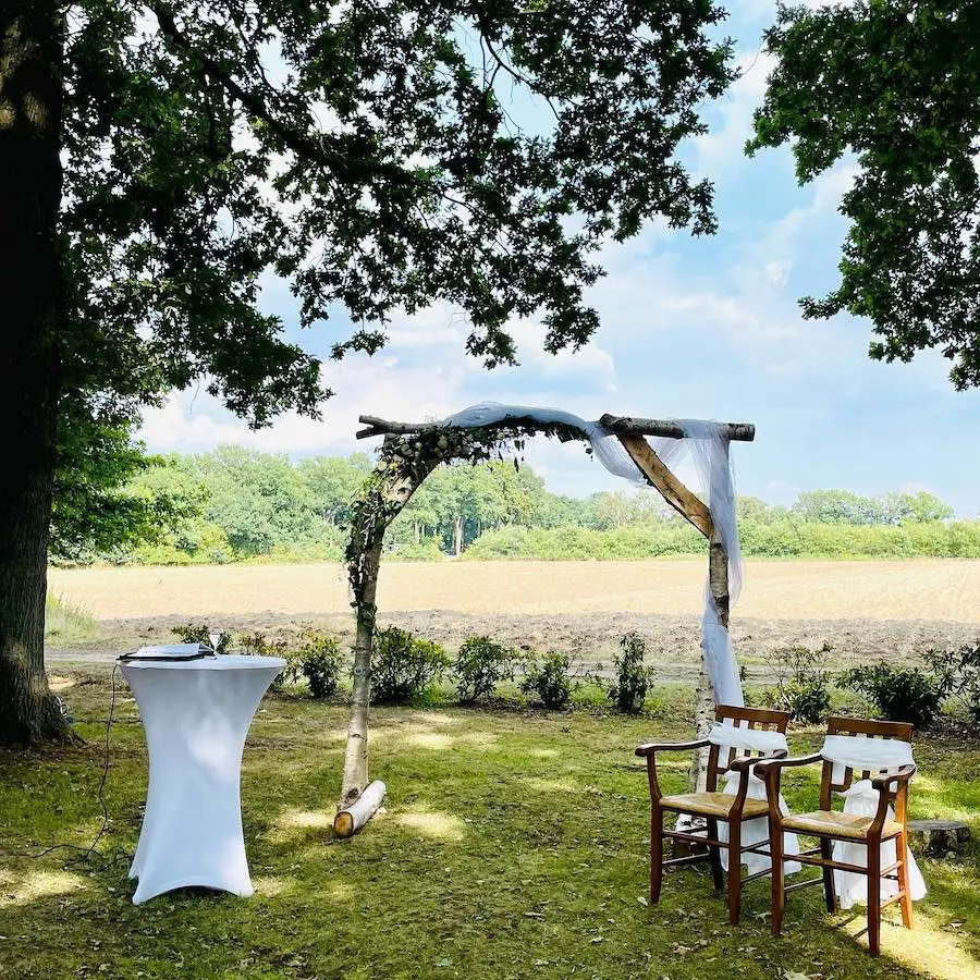 Auch steht Ihnen unser idyllisch gelegener Hof für eine freie Trauung in Verbindung mit Ihrer Hochzeitsfeier zur Verfügung.